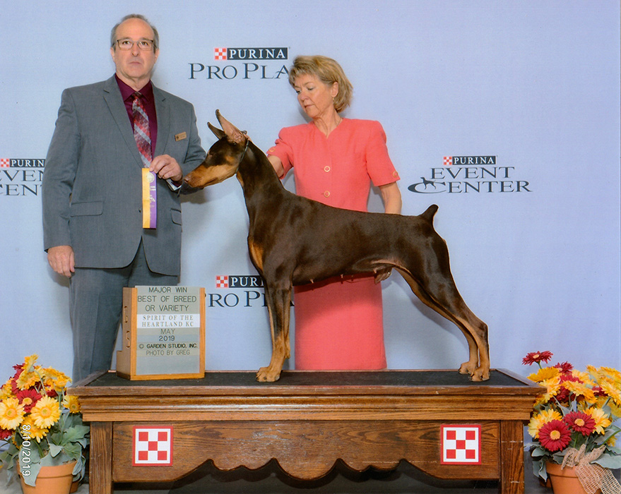 Bellini had a brief entrance into the show ring at just 6 months of age where she won breed over a large group of Specials and onto a Group 1 in a very competitive working Group. We decided to bring her home and wait for her to grow up and hit the ring hard which is exactly what she did. She completed her championship in 3 weekends with her handler, Cindy Smith with 4 majors and several reserves. She has also received her WAC and her Dock Diving Senior title all within the last couple of months. |