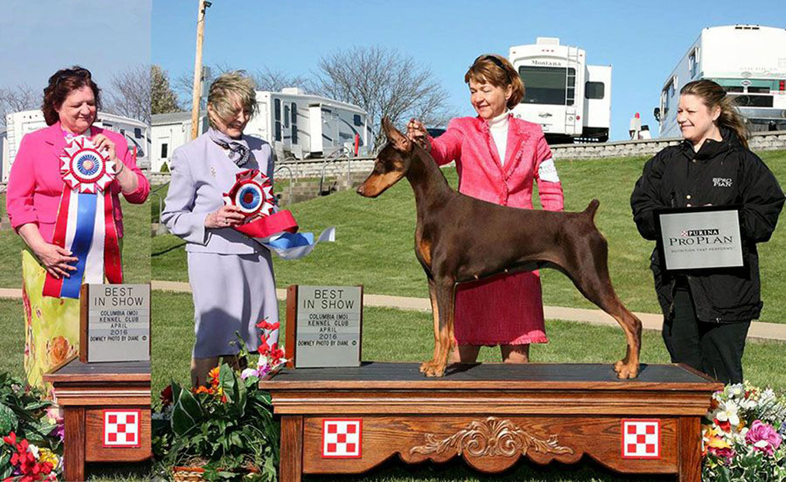 Sydney finished her campaign after 8 months with 8 Best in Shows, 8 Best in Specialty Shows and was not only a DPCA TOP TWENTY Finalist at the 2016 and 2017 National Specialty