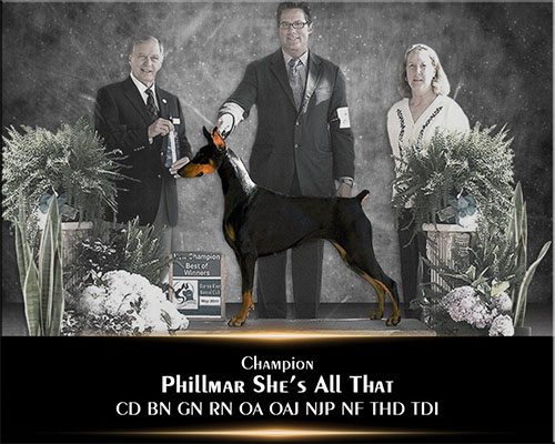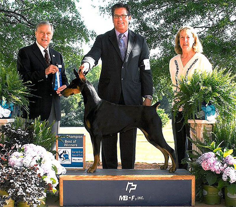 Here is a link to Karma's pedigree on DobeQuest |