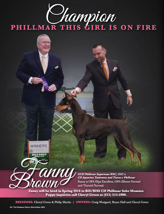 Here is a link to Fanny Brown's pedigree on DobeQuest |