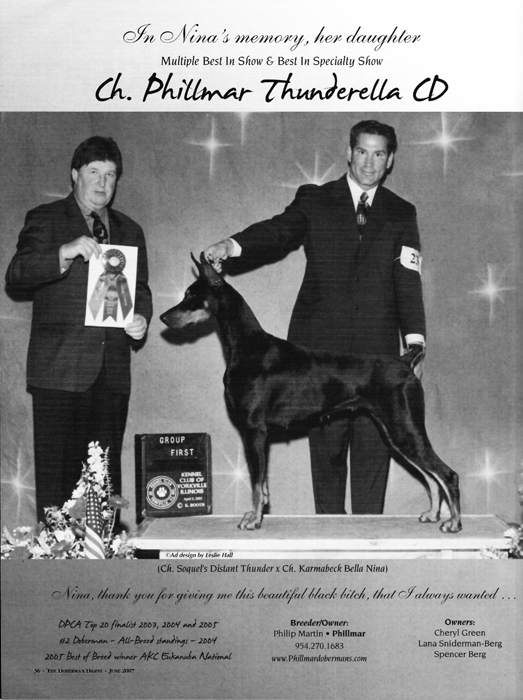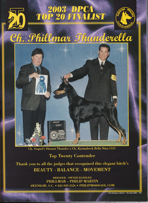 - BIS BISS CH Phillmar Sisterella (a DPCA Top Twenty Finalist in 2009 and 2010)