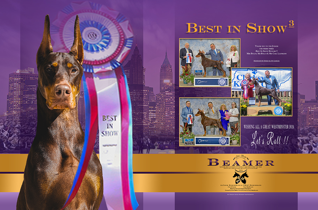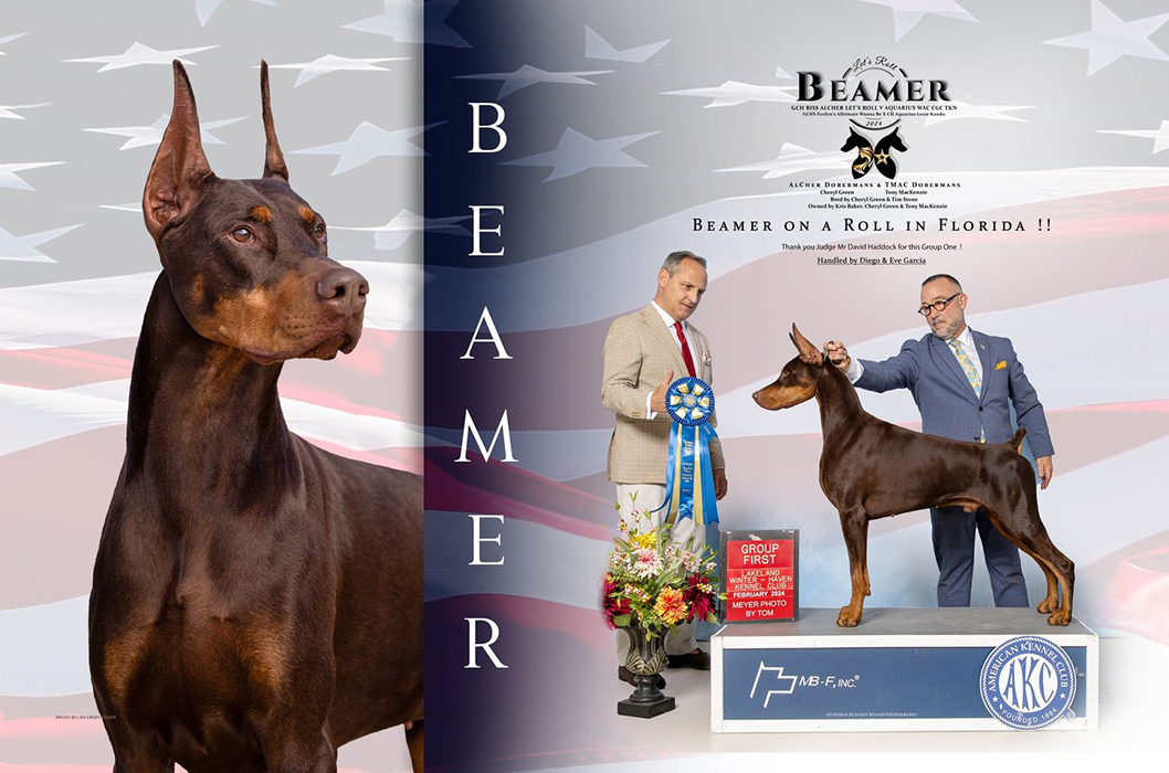 In his young Stud Career, Beamer has already sired 2 Champions and several more that are actively showing and are already pointed.
